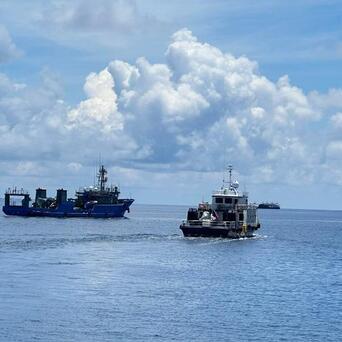 据海洋装备与公务船资讯的消息,菲律宾海警22日在中业岛附近又搞了一次骚扰活动,而且带上了大批的西方媒体。三艘船从非法侵占的中业岛出发,半小时后闯入中业岛以西至铁线礁一线的1、2、3号沙洲附近。